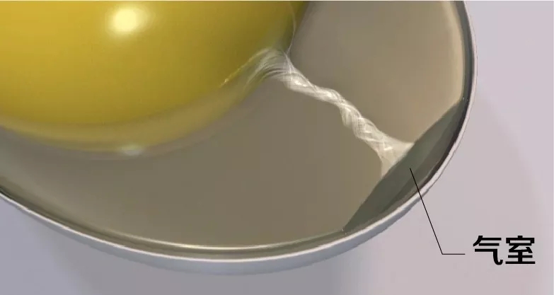 剛排出體外的雞蛋還差最后一個(gè)關(guān)鍵部位,氣室。蛋雞泄殖腔溫度41.5℃左右,環(huán)境溫度18-30℃之間,雞蛋在外部環(huán)境中遇冷收縮,形成氣室。